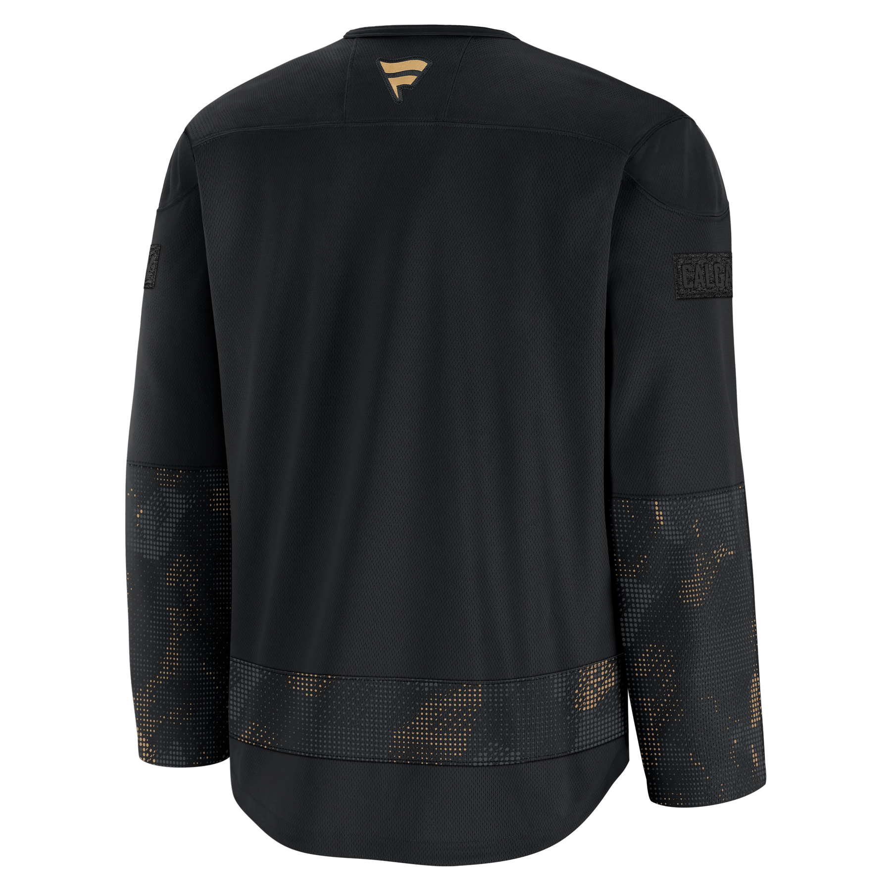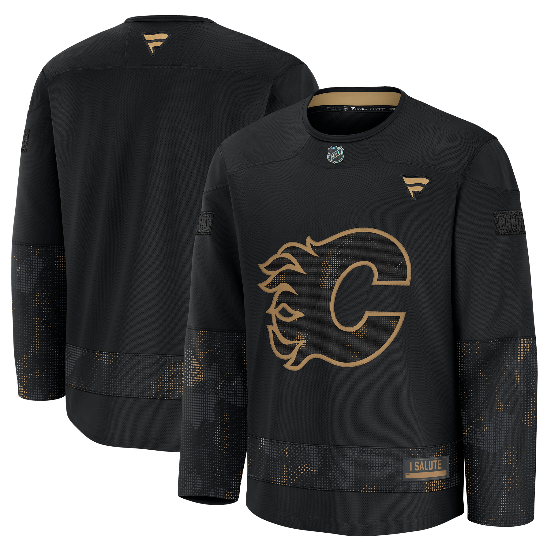 Show off your Calgary Flames pride with this 2025 Military Appreciation Practice Jersey from Fanatics. This jersey is crafted with FanTex, a performance midweight fabric that provides optimal drape and range of motion, ensuring both comfort and flexibility. The rounded droptail hem with side vents allows for a full range of motion, while the moisture-wicking FanShield technology keeps you cool, dry, and comfortable whether you're cheering on the Calgary Flames from the stands or hitting the ice yourself.