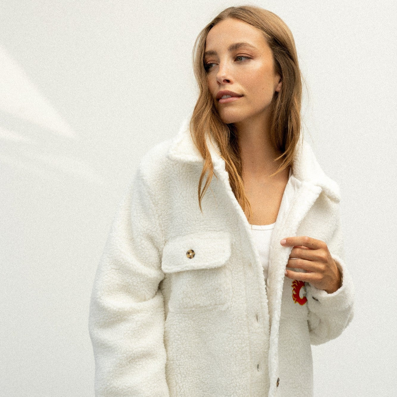 Plush sherpa jacket. Perfect for supporting your favorite team when you need to brave the cold. Relaxed fit.