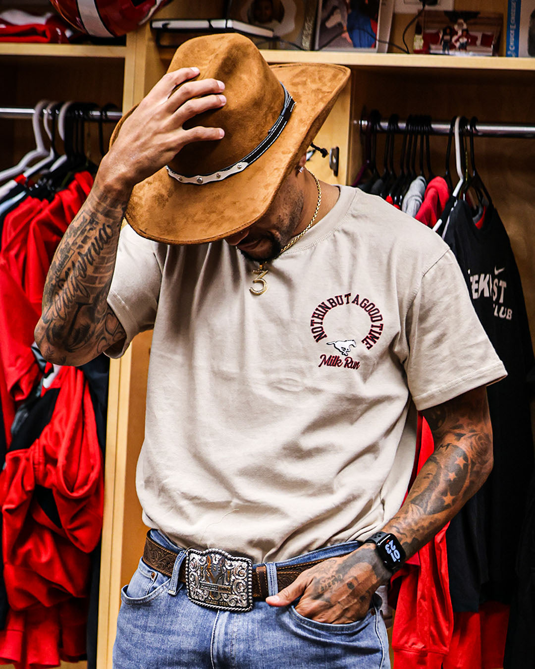 Stamps x Milk Run “Nothin’ But A Good Time” Tee celebrates Calgary pride with bold graphics and team energy. Featuring the Stamps and Milk Run logos, this classic crewneck blends comfort and confidence in a standout design built for game day and beyond. For optimal fit retention, wash in cold water and hang to dry.